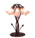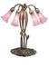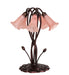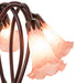 One of the most popular Louis Comfort Tiffany styled lamps on the market today, recreating his famous Favrile design from the early 1900's. This softly mottled Petal Pink shaded 5 Light Accent Lamp offers an attractive, delicate design featuring shades mouth blown of fine art glass. Lily shades are suspended from stems delicately winding above a Lily pad base finished by hand in Mahogany Bronze.