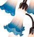 One of the most popular Louis Comfort Tiffany styled lamps on the market today, recreating his famous Favrile design from the early 1900's. This mottled Indigo Blue tipped Pink shaded Twelve Light Floor Lamp offers an attractive, delicate design featuring shades mouth blown of fine art glass. Lily shades are suspended from stems delicately winding above a Lily pad base finished by hand in Mahogany Bronze.