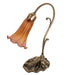 Inspired by the famous Tiffany design from the early 1900s. This mini lamp features a stunning shade mouth blown of fine Amber and Purple art glass. The Lily shade is embraced by an elegant cast base finished by hand in Antique Brass. The Pond Lily Mini Lamp is featured in our American designed, handcrafted Favrile Glass Lighting Collection. UL and cUL listed for dry locations. Each shade is a unique work of art with color variations based on natural ingredients inherent in the glass. Contact us if color matching is critical when ordering multiple items.