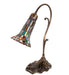 Inspired by Tiffany's famous Pond Lily design from the early 1900s... This mini lamp is created with a stunning variety of stained glass using the famous Meyda Tiffany copperfoil construction. The Pond Lily shade is embraced by an elegant cast metal base finished by hand in Antique Brass. The Pond Lily Mini Lamp is featured in our American designed, handcrafted Stained Glass Lighting Collection. UL and cUL listed for dry locations. Each shade is a unique work of art with color variations based on natural ingredients inherent in the glass. Contact us if color matching is critical when ordering multiple items.
