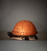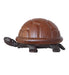 A Land Turtle is transformed into a charming accent lamp featuring an Amber mottled glass shade that rests on a cast metal base.