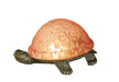 A Land Turtle is transformed into a charming accent lamp featuring a Rosy Pink mottled glass shade that rests on a cast metal base.