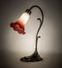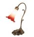 Inspired by the famous Tiffany design from the early 1900s... This mini lamp features a stunning Red and White art glass shade that is embraced by an elegant cast base finished by hand in Antique Brass. The Pond Lily Mini Lamp is included in our American designed, handcrafted Favrile Glass Lighting Collection. UL and cUL listed for dry locations. Each shade is a unique work of art with color variations based on natural ingredients inherent in the glass. Contact us if color matching is critical when ordering multiple items.