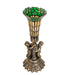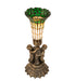 Inspired by the famous Tiffany design from the early 1900s. This mini lamp features a stunning shade mouth blown of fine Beige and Green art glass. The Pond Lily shade is embraced by an elegant cast base featuring two cherubs finished by hand in Antique Brass. The Pond Lily Table Lamp is featured in our American-designed, handcrafted Stained Glass Lighting Collection. UL and cUL listed for dry locations. Each shade is a unique work of art with color variations based on natural ingredients inherent in the glass. Contact us if color matching is critical when ordering multiple items.