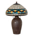 Tiffany-inspired Golden Acorns dance playfully in a ring around these geometric grid-patterned shades in Autumn Harvest Honey, Rust, and Olive Green. The stained glass shade is created using the famous Meyda Tiffany copperfoil construction technique. The handsome acorn and oak leaf lamp cast metal base is hand finished in Warm Mahogany Bronze. The lamp is ideal as an illuminating accent piece on credenzas, occasional tables, nightstands, and other spaces in residential and hospitality settings. Inspired by Oak Tree forests throughout the US, from Raleigh, North Carolina, to Conway, South Carolina, to Thousand Oaks, California. The Tiffany Acorn Table Lamp is featured in our American designed, handcrafted Tiffany Reproduction Collection. UL and cUL listed for dry locations.
