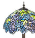 Stylized Wisteria flower clusters in Petal Pink, Amethyst Blue, and Dark Mauve with Jade Green leaves and Dark Mauve vines drape over the Beige background of the shades of this wall sconce. The classic styling of Tiffany art glass and soft pastel colors will add charm to living spaces, dining rooms, and nearly any room in residential and hospitality settings. Inspired by flower gardens from Atlanta, Georgia, to Woodside, California, to Koloa in Kauai, Hawaii. The stunning shade is made of hand-cut glass using the famous Meyda Tiffany copperfoil construction technique. This floor lamp is complemented with an elegant cast metal base in a warm Mahogany Bronze finish. The Wisteria Floor Lamp is featured in our American-designed, handcrafted Stained Glass Lighting Collection. UL and cUL listed for dry locations. Each shade is a unique work of art with color variations based on natural ingredients inherent in the glass. Please contact us if color matching is critical when ordering multiple items.