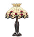 Grace your home with the elegant Roseborder Table Lamp. This lamp features an exquisitely crowned shade featuring a gridwork of Beige art glass adorned with a Bark Brown Granite Glass border of swirling ribbons and perfect Red Rosebuds with Green Leaf accents. The shade is made of hand cut art glass using the famous Meyda Tiffany copperfoil construction process and embraced by a lamp base finished in Mahogany Bronze. The Roseborder Table Lamp is featured in our American designed, handcrafted Stained Glass Lighting Collection. UL and cUL listed for dry locations. Each shade is a unique work of art with color variations based on natural ingredients inherent in the glass. Contact us if color matching is critical when ordering multiple items.