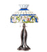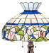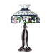 Colorful blooming roses in shades of Pink and Mauve circle a White trellis of glass, accented by ribbon, vines and buds in Blue with Earthy leaves to complete the look of this stunning crowned shade. This beautiful stained glass shade is created using the famous Meyda Tiffany copperfoil construction process. The colorful shade is complemented with a Mahogany Bronze finished base. This exquisite table lamp is UL and cUL listed for dry locations.