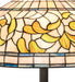 Subtle toned Autumn Gold, Russet and Moss Green leaves swirl against an Amber Mauve background in this Tiffany Studio stained glass reproduction. The shade is enhanced with bands of Purple, Blue and Green and created using the famous Meyda Tiffany copperfoil construction process. This elegant art glass lamp features a Mahogany Bronze finished floor base. Every Meyda Tiffany item is a unique handcrafted work of art. Natural variations in the glass colors make every item a masterpiece of its own. UL and cUL listed for dry locations.