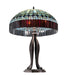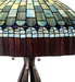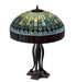 In the early 20th century, Tiffany Studios used artful mastery to develop the look of woven fabric with a fringed skirt out of glass. Meyda Tiffany is able to configure this timeless reproduction into a stunning table lamp. The shade features Multi-hued Plum fringe and dome brickwork intertwined with Emerald, Cobalt, Heather, Xanadu, Azure and Saffron art glass. The art glass shade is created using the famous Meyda Tiffany copperfoil construction process and enhanced with a table base finished in Mahogany Bronze. UL and cUL listed for dry locations.