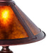 In the tradition of American master craftsman Dirk Van Erp, this appealing hand finished Mahogany Bronze frame glows with the warmth of the natural Amber Mica panels within. The shade is supported by an elegantly simple lamp base in matching Mahogany Bronze finish.