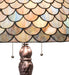 A Louis Comfort Tiffany studio classic... The renowned Fishscale design features a variegated Tortoiseshell of Emerald, Sapphire, Mauve and Beige colored art glass, evoking a unique dimensional and textured look in a rainbow of brilliant hues. This exquisite art glass shade is created using the famous Meyda Tiffany copperfoil construction process and complemented with an elegant cast metal lamp base finished in Mahogany Bronze. The Tiffany Fishscale Table Lamp is included in our American-designed, Tiffany Reproduction Lighting Collection. UL & cUL listed for dry locations. Each shade is a unique work of art with color variations based on natural ingredients inherent in the glass. Contact us if color matching is critical when ordering multiple items.