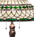 Emerald-colored glass jewels and Multi colored granite glass accent this handsome Amber Beige art glass reproduction of a famous Louis Comfort Tiffany design. Our Tiffany Roman shade is inspired by Italian art and architecture and handcrafted of authentic stained glass using the famous Meyda Tiffany copperfoil construction method. Every art glass lamp is a unique handcrafted work of art. Natural variations in the glass colors make every item a masterpiece of its own. The table lamp base is finished in a hand applied Mahogany Bronze.