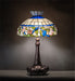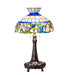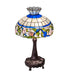Colorful blooming roses in shades of Pink and Mauve circle a White trellis of glass, accented by ribbon, vines and buds in Blue with Earthy leaves to complete the look of this stunning crowned shade. This beautiful stained glass shade is created using the famous Meyda Tiffany copperfoil construction process. The colorful shade is complemented with a Mahogany Bronze finished base. This exquisite table lamp is UL and cUL listed for dry locations.