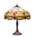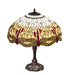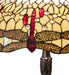 A stunning reproduction of the most beloved stained glass dragonfly design from Tiffany Studios. Our Hanginghead Dragonfly Lamp features diving Ruby colored Dragonflies with glowing jewels and delicate metal filigree wings circle over hand cut and hand-selected pieces of Light and Dark Beige colored art glass. The shade is accented with glistening jewels in Clear, Red and Amber and created with the famous Meyda Tiffany copperfoil construction. The magnificent shade is complemented with a base hand finished in Mahogany Bronze. UL and cUL listed for dry locations. Each shade is a unique work of art with color variations based on natural ingredients inherent in the glass. Contact us if color matching is critical when ordering multiple items.