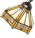 Honey-colored stained glass strips accent the Beige panels of this hexagonal-shaped shade, which is highlighted with Brass Filigree Accents on the shade's skirt. The small center square pieces of glass feature Sunburst and Amber accents. The shade is constructed using Meyda Tiffany's famous copperfoil construction process and complemented with an elegant cast metal bridge arm base finished in Mahogany Bronze. Ideal for tables and desks in homes, banks, and libraries, including Atlanta, Savannah, and Athens, Georgia. The Peaches Bridge Arm Table Lamp is featured in the American-designed, handcrafted Stained Glass Lighting Collection. UL and cUL listed for dry locations. Each shade is a unique work of art with color variations based on natural ingredients inherent in the glass.