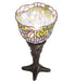 Recreating Tiffany Studios' highly sought-after Flowering Lotus lamp, one of the world's foremost art glass designs This exquisite mini lamp features a shade crafted using quality hand-rolled art glass and the same high quality Meyda Tiffany copperfoil technique. Leafy Green and Pink petals highlight the multiple stems in blossom, this shade recaptures the artistry and craftsmanship perfected by Tiffany in his original creations. Traditionally elegant, classically styled, and made to the highest quality standards, this lamp will add character to any room. The uniquely decorative base is finished in a warm Mahogany Bronze. The Tiffany Flowering Lotus Mini Lamp is included in our American designed, handcrafted Tiffany Reproduction Collection. UL and cUL listed for dry locations. Each shade is a unique work of art with color variations based on natural ingredients inherent in the glass. Contact us if color matching is critical when ordering multiple items.