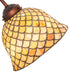 A Louis Comfort Tiffany studio classic. The famous Fishscale design features a variegated Tortoiseshell of Emerald, Sapphire, Mauve and Beige colored art glass, evoking a unique dimensional and textured look in a rainbow of brilliant hues. This exquisite art glass shade is created using the famous Meyda Tiffany copperfoil construction. The shade is complemented with an elegant cast base in a Mahogany Bronze finish.The Fishscale Table Lamp is featured in our American designed, handcrafted Stained Glass Lighting Collection. UL and cUL listed for dry locations. Each shade is a unique work of art with color variations based on natural ingredients inherent in the glass. Contact us if color matching is critical when ordering multiple items.