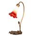 Inspired by the famous Tiffany design from the early 1900s... This accent lamp offers an attractive, delicate design featuring a stunning shade mouth blown of fine Red and White art glass. The Lily shade is embraced by an elegant cast base finished by hand in Mahogany Bronze. The Pond Lily Accent Lamp is featured in our American designed, handcrafted Stained Glass Lighting Collection. UL and cUL listed for dry locations. Each shade is a unique work of art with color variations based on natural ingredients inherent in the glass. Contact us if color matching is critical when ordering multiple items.