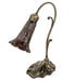 Inspired by the famous Tiffany design from the early 1900s. This mini lamp features a stunning shade created of fine Red art glass using the famous Meyda Tiffany copperfoil construction technique. The Lily shade is embraced by an elegant cast base finished by hand in Antique Brass. The Pond Lily Mini Lamp is featured in our American designed, handcrafted Stained Glass Lighting Collection. UL and cUL listed for dry locations. Each shade is a unique work of art with color variations based on natural ingredients inherent in the glass. Contact us if color matching is critical when ordering multiple items.
