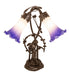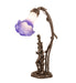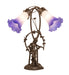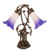 Inspired by Tiffany's famous Pond Lily design from the early 1900s... This table lamp is created with two mouth blown shades featuring Purplish Blue and White art glass. The Pond Lily shades are embraced by an elegant Cast Bronze Base featuring a girl under a trellis and finished in a rich Mahogany patina. The Pond Lily Table Lamp is featured in our American designed, handcrafted Favrile Lighting Collection. UL and cUL listed for dry locations. Each shade is a unique work of art with color variations based on natural ingredients inherent in the glass. Contact us if color matching is critical when ordering multiple items.