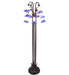 Inspired by the famous Tiffany design from the early 1900s. This floor lamp features 12 stunning Blue/White Favrile style glass shades created using the famous Meyda Tiffany copperfoil construction technique. An elegant cast metal base with winding vines and a lily pad embrace the shades with floral-styled fitters finished by hand in Mahogany Bronze and inspired by antique lighting in homes from the Bowery in New York City, to Philadelphia, Pennsylvania, to San Francisco, California. Ideal for placement near a chair or table in living spaces, dining areas, and other settings in hospitality and residential settings. The Stained Glass Pond Lily Floor Lamp is included in our American-designed, handcrafted Favrile Glass Lighting Collection. UL and cUL listed for dry locations. Each shade is a unique work of art with color variations based on natural ingredients inherent in the glass.