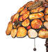 Using natural stones to create new lighting designs, Multicolored and Red Agata Stones are crafted into a lampshade using the famous Meyda Tiffany copperfoil construction process. The natural stones are renowned by some for their balanced Yin/Yang energy, courage, protection, healing and calming. This unique shade, featuring the extraordinary texture and styling of opalesque quartz, is complemented with a decorative base finished in a handsome Mahogany Bronze. The Agata Table Lamp is included in our American-designed, handcrafted Natural Stone Lighting Collection. UL & cUL listed for dry locations. Each shade is a unique work of art with color variations based on natural ingredients inherent in the stone.