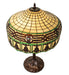 A stunning decorative lighting design inspired by classic motifs from the early 1900s. Bark Brown Flowers outline the perimeter of this art glass shade, which features matching borders and medallions, as well as Green trim above and below the floral motif, and is crowned with a Beige gridwork background. The shade is created using the famous Meyda Tiffany copperfoil construction technique and embraced by an elegant cast base finished by hand in Mahogany Bronze. The Gorham Table Lamp is featured in our American-designed, handcrafted Stained Glass Lighting Collection. UL and cUL listed for dry locations. Each shade is a unique work of art with color variations based on natural ingredients inherent in the glass.