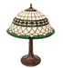 Emerald-colored glass jewels and Multi colored granite glass accent this handsome Beige art glass reproduction of a famous Louis Comfort Tiffany design. The Tiffany Roman shade is inspired by Italian art and architecture and handcrafted of authentic stained glass using the famous Meyda Tiffany copperfoil construction method. The table lamp base is finished in a hand applied Mahogany Bronze. The Tiffany Roman Table Lamp is included in our American designed, handcrafted Tiffany Reproduction Collection. UL and cUL listed for dry locations. Each shade is a unique work of art with color variations based on natural ingredients inherent in the glass. Contact us if color matching is critical when ordering multiple items.