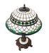 Emerald-colored glass jewels and Multi colored granite glass accent this handsome Beige art glass reproduction of a famous Louis Comfort Tiffany design. The Tiffany Roman shade is inspired by Italian art and architecture and handcrafted of authentic stained glass using the famous Meyda Tiffany copperfoil construction method. The table lamp base is finished in a hand applied Mahogany Bronze. The Tiffany Roman Table Lamp is included in our American designed, handcrafted Tiffany Reproduction Collection. UL and cUL listed for dry locations. Each shade is a unique work of art with color variations based on natural ingredients inherent in the glass. Contact us if color matching is critical when ordering multiple items.