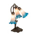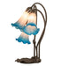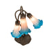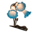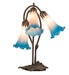 Recreating the popular Tiffany design from the early 1900s... This table lamp offers an attractive, delicate design featuring three stunning Pink and Blue art glass shades. The Pond Lily shades are embraced by an elegant cast metal base that is finished by hand in Mahogany Bronze. The Pond Lily Mini Lamp is featured in our American designed, handcrafted Favrile Style Glass Lighting Collection. Each shade is a unique work of art with color variations based on natural ingredients inherent in the glass. Contact us if color matching is critical when ordering multiple items.