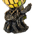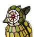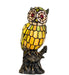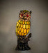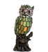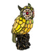 A beautiful representation of the Wise Majestic Owl, this charming accent lamp symbolizes transformation, intuitive development, good luck, and self-actualizations. This lighted art glass sculpture is created using the famous Meyda Tiffany copperfoil construction technique in Amber, Green, and Pink art glass, accented with Red Jewel eyes. The figure sits on a stunning cast metal base designed as a Turtle and finished in Black with Gold Highlights. Ideal as an illuminating accent piece for placement on mantels, credenzas, occasional tables, and other spaces in residential and hospitality settings. Inspired by Owls throughout the US, from Santee and Hardeeville, South Carolina, to Cook County, Illinois, to Portland, Oregon, to Redwood National and State Parks throughout California. The Owl Accent Lamp is included in our American-designed Stained Glass Collection. UL and cUL listed for dry locations. Each lamp is a unique work of art with color variations based on natural ingredients inherent in the glass. Please contact us if color matching is critical when ordering multiple items.