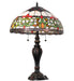 An exquisite Country French lighting design features Red Fleur-de-lis motifs that highlight Leafy Green scrollwork, accented with Amber glass jewels, on a Beige art glass background. The shade, which was created using the famous Meyda Tiffany copperfoil construction process, is trimmed in Root Beer Ripple Glass on the bottom while the top border features a Multicolored Dark Blue. This beautiful shade is supported by a sturdy, handsome table lamp finished in Mahogany Bronze. The Creole Table Lamp is included in our American-designed, handcrafted Stained Glass Lighting Collection. UL & cUL listed for dry locations.