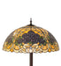 Beautiful bouquets of full blooming Lavender Roses circle this exquisite stained glass shade. The roses are accented with Green leaves against a Beige and Yellow Nouveau-styled scrolled background design. The delicate domed inverted shade is paired with an elegant cast metal floor base hand-finished in Mahogany Bronze. The handcrafted shade is created using the famous Meyda Tiffany copperfoil construction technique. The floor lamp will make a beautiful, illuminating design statement in dining and living spaces in residential and hospitality settings from Atlanta, Georgia, to Miami, Florida, to St. Louis, Missouri. The Rose Bouquet Table Lamp is featured in our American-designed, handmade Stained Glass Lighting Collection. UL and cUL listed for dry locations. Each shade is a unique work of art with color variations based on natural ingredients inherent in the glass.