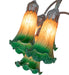 Inspired by the popular Tiffany design from the early 1900s... This floor lamp offers an attractive, delicate design featuring 12 shades created using mouth-blown Favrile-style Amber and Green art glass. The Pond Lily shades are embraced by an elegant Cast Bronze floor base with floral and vine accents featuring a rich Mahogany patina. The Pond Lily Floor Lamp is featured in our American-designed, handcrafted Favrile Glass Lighting Collection. UL and cUL listed for dry locations. Each shade is a unique work of art with color variations based on natural ingredients inherent in the glass. Contact us if color matching is critical when ordering multiple items.
