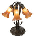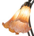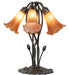 Recreating the famous Tiffany design from the early 1900s. This elegant table lamp features 5 Amber Favrile Style art glass shades. An elegant cast metal hub embraces the Lily shades with floral-style fitters finished by hand in Mahogany Bronze. Our American-designed, handcrafted Favrile Glass Lighting Collection includes the Pond Lily Table Lamp. UL and cUL listed for dry locations. Each shade is a unique work of art with color variations based on natural ingredients inherent in the glass. Please contact us if color matching is critical when ordering multiple items.