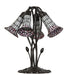 Inspired by the famous Tiffany design from the early 1900s. This table lamp features five stunning Pink and White stained glass shades created using the famous Meyda Tiffany copperfoil construction technique. An elegant cast metal base with winding vines and lily pad embraces the shades with fitters finished by hand in Mahogany Bronze and inspired by antique lighting in homes from the Bowery in New York City, to Philadelphia, Pennsylvania, to San Francisco, California. Ideal for placement near a chair or table in living spaces, dining areas, and other settings in hospitality and residential settings. The Stained Glass Pond Lily 5 Light Table Lamp is included in our American-designed, handcrafted Stained Glass Lighting Collection. UL and cUL listed for dry locations. Each shade is a unique work of art with color variations based on natural ingredients inherent in the glass.