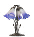 Recreating the famous Tiffany design from the early 1900s. This elegant table lamp features five Blue/White Favrile-style art glass shades. An elegant cast metal base embraces the Lily-style shades with floral-style fitters finished by hand in Mahogany Bronze and inspired by antique lighting in homes from the Bowery in New York City, to Philadelphia, Pennsylvania, to San Francisco, California. Ideal for placement on an occasional table or credenza in a fine home or hotel. The Tiffany Pond Lily 5 Light Table Lamp is included in our American-designed, handcrafted Favrile Glass Lighting Collection. UL and cUL listed for dry locations. Each shade is a unique work of art with color variations based on natural ingredients inherent in the glass.