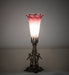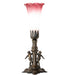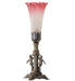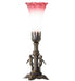Recreating the famous Tiffany design from the early 1900s. This mini lamp features a stunning shade that is mouth blown of Pink and White Favrile-styled art glass. The Pond Lily shade is embraced by an elegant Twin Maidens figurine cast metal base finished by hand in Antique Brass. The lamp design is perfect for homes and restaurants from Corona, Queens, and Laurel Hollow, Long Island, New York, to Winter Park, Florida, to Chicago, Illinois. The Tiffany Pond Lily Maidens Mini Lamp is included in our American-designed, handcrafted Favrile Glass Collection. UL and cUL listed for dry locations. Each shade is a unique work of art with color variations based on natural ingredients inherent in the glass.