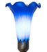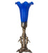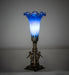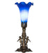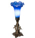 Recreating the famous Tiffany design from the early 1900s. This accent lamp features a stunning shade that is mouth blown of Blue Favrile-styled art glass. The Pond Lily shade is embraced by an elegant Maidens figurine cast metal base finished by hand in Antique Brass. The lamp design is perfect for homes and restaurants from Corona, Queens, and Laurel Hollow, Long Island, New York, to Winter Park, Florida, to Chicago, Illinois. The Tiffany Pond Lily Maidens Mini Lamp is included in our American-designed, handcrafted Favrile Glass Collection. UL and cUL listed for dry locations. Each shade is a unique work of art with color variations based on natural ingredients inherent in the glass.