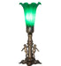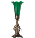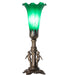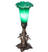 Recreating the famous Tiffany design from the early 1900s. This accent lamp features a stunning shade that is mouth-blown of Green Favrile-styled art glass. The Pond Lily shade is embraced by an elegant Maidens figurine cast metal base finished by hand in Antique Brass. Perfect for homes and restaurants from Corona, Queens and Laurel Hollow, Long Island, New York, to Winter Park, Florida, to Chicago, Illinois. The Tiffany Pond Lily Maidens Mini Lamp is included in our American-designed, handcrafted Favrile Glass Collection. UL and cUL listed for dry locations. Each shade is a unique work of art with color variations based on natural ingredients inherent in the glass.