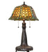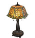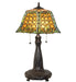 A stunning recreation of the Shell & Diamond design created by Duffner & Kimberly, a prolific studio specializing in stained glass and bronze lighting. This beautiful stained glass shade is featured in Honey Amber, with a beautifully executed Jade glass pattern inspired by European architecture. The shade is created using the famous Meyda Tiffany copperfoil construction technique. The elegant cast metal base is offered in a warm Mahogany Bronze finish. The lamp is ideal as an illuminating accent piece for credenzas, occasional tables, and other spaces in residential and hospitality settings. The Duffner & Kimberly Shell & Diamond Table Lamp is included in our American-designed, handcrafted Stained Glass Lighting Collection. UL and cUL listed for dry locations. Each shade is a unique work of art with color variations based on natural ingredients inherent in the glass. Please get in touch with us if color matching is critical when ordering multiple items.