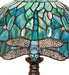 This beloved lighting design is modeled after the original Hanging Head dragonfly from Tiffany Studios. Diving Blue Dragonflies with glowing jeweled eyes and delicate metal filigree wings circle over hand-cut and copperfoiled pieces of Lakeside Blue and Pond Green glass representing rippling water. This lovely shade is created using the famous Meyda Tiffany copperfoil construction and enhanced with a Mahogany Bronze finished base. The lamp design is inspired by Dragonflies that inhabit renowned gardens in the New York Botanical Garden in Bronx Park, New York City, and the White House in Washington, D.C. The beautiful lamp is ideal for placement in picture windows and on desks and tables to create a stunning design statement. The Tiffany Hanginghead Dragonfly Table Lamp is included in our American-designed, handcrafted Tiffany Reproduction Collection. UL and cUL listed for dry locations.