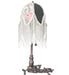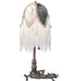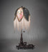 Natural forms and fabric come to light with this beautiful Fabric Tulip table lamp. Soft Ivory Pink and Blue Tulip-designs are featured on damask-styled fabric that is edged in long strands of Glass Beaded Fringe and across a gracefully curving form. The colorful fabric floral petal forms contrast beautifully with Hunter Green panels and are enhanced with a Mahogany Bronze finished base that doubles as a vanity tray. The lamp is perfect for placement in picture windows and on tables in residential, hospitality, and commercial settings throughout the US, including Reno, Nevada, to Helena, Montana, to Everett, Washington. The Fabric & Fringe Lighted Vanity Tray is included in our American-designed, handcrafted Fabric & Fringe Collection. UL and cUL listed for dry locations.