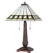 Simple, clean lines and geometric shapes are the hallmarks of the Mission style. This sleek Bisque Beige stained glass shade features a simple, elegant Diamond pattern in Beige accented with Amber, Jade, and Peridot borders. This stunning shade is created with the famous Meyda Tiffany copperfoil construction technique and complemented with an elegant cast metal base featured in a Mahogany Bronze finish. The Diamond Band Mission Table Lamp is included in our American-designed, handcrafted Mission Lighting Collection. UL and cUL listed for dry locations. Each shade is a unique work of art with color variations based on natural ingredients inherent in the glass.