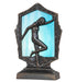 A graceful posing lady is highlighted on this Deco-styled accent lamp. The elegant metal statuette finished in Antique Brass is complemented with a stunning Sky Blue Art Glass lens that is illuminated from the back. The accent lamp is perfect for lighting desktops, tabletops, and other spaces in various residential and hospitality settings, from Newport, Rhode Island, to Raleigh, North Carolina, to Fort Worth, Texas. The Posing Deco Lady Accent Lamp is included in our American-designed, handcrafted Art Deco Collection. UL and cUL listed for dry locations.