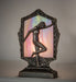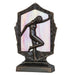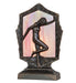 This Art Deco-styled accent lamp features a graceful posing lady. This elegant metal statuette, finished in Antique Brass, is complemented by a stunning Pink Iridescent Glass lens that is illuminated from the back. The accent lamp is perfect for desktops, tabletops, and other spaces in residential and hospitality settings, from Newport, Rhode Island, to Raleigh, North Carolina, to Fort Worth, Texas. The Posing Deco Lady Accent Lamp is included in our American-designed, handcrafted Art Deco Collection. It is UL and cUL listed for dry locations.