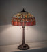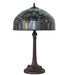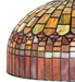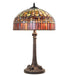 Elegant and distinctive, this Tiffany Candice lamp design features a beautiful shade with Amber Plum glass fringe crowning domed brickwork of Emerald, Cobalt, and Ruby with Purple diamond-shaped accents for the look of woven fabric. The art glass shade is created using the famous Meyda copperfoil construction and complemented with an elegant cast resin base in a Mahogany Bronze finish. The lamp is ideal for illuminating picture windows, tables, and desks in homes and offices from Exeter, New Hampshire, to Billings, Montana, to Seattle, Washington. The Candice Table Lamp is included in our American-designed, handcrafted Tiffany Reproduction Lighting Collection. UL and cUL listed for dry locations. Each shade is a unique work of art with color variations based on natural ingredients inherent in the glass.