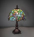 Stylized Wisteria flower clusters in Amethyst Blue and Dark Mauve with Jade Green leaves and Dark Mauve vines are featured in this stained glass shade. The classic styling of Tiffany art glass and soft pastel colors will add charm to living spaces, dining rooms, kitchens, and nearly any room in residential and hospitality settings. This beautiful lighting design was inspired by flower gardens from the Bronx, New York, to Richmond, Virginia, to Gainesville, Florida. The luxurious shade is created using the famous Meyda Tiffany copperfoil construction. The Tiffany Wisteria Mini Lamp is included in our American-designed, handcrafted Tiffany Reproduction Collection. UL and cUL listed for dry locations. Each shade is a unique work of art with color variations based on natural ingredients inherent in the glass.