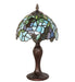 Stylized Wisteria flower clusters in Petal Pink, Amethyst Blue, and Dark Mauve with Jade Green leaves and Dark Mauve vines are featured in this stained glass shade. The classic styling of Tiffany art glass and soft pastel colors will add charm to living spaces, dining rooms, kitchens, and nearly any room in residential and hospitality settings. Inspired by flower gardens from the Bronx, to Richmond, Virginia, to Gainesville, Florida. The luxurious shade is created using the famous Meyda Tiffany copperfoil construction. The Tiffany Wisteria Mini Lamp is included in our American-designed, handcrafted Tiffany Reproduction Collection. UL and cUL listed for dry locations. Each shade is a unique work of art with color variations based on natural ingredients inherent in the glass.